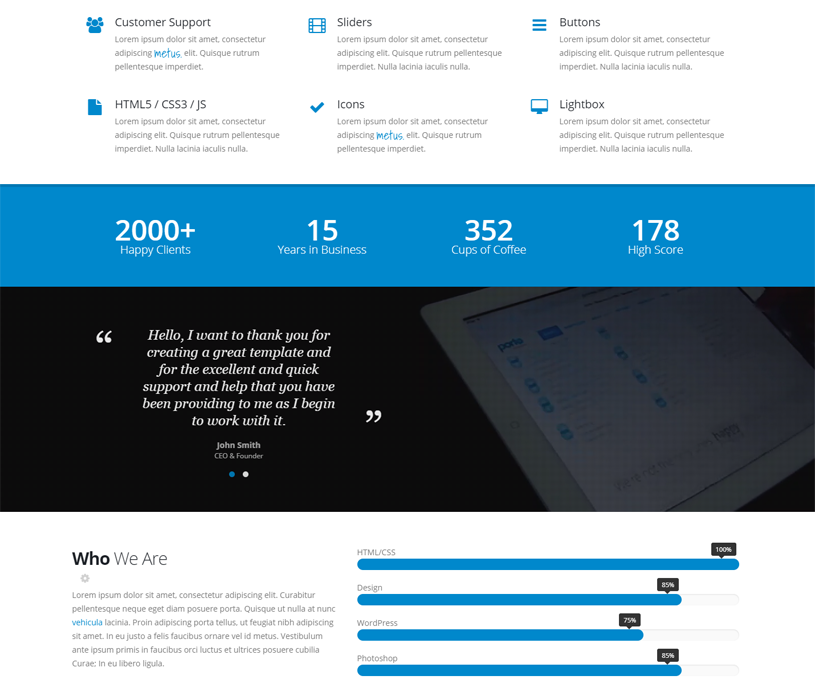 Porto comes with tons of elements that allows you to create different types of pages on your website.
